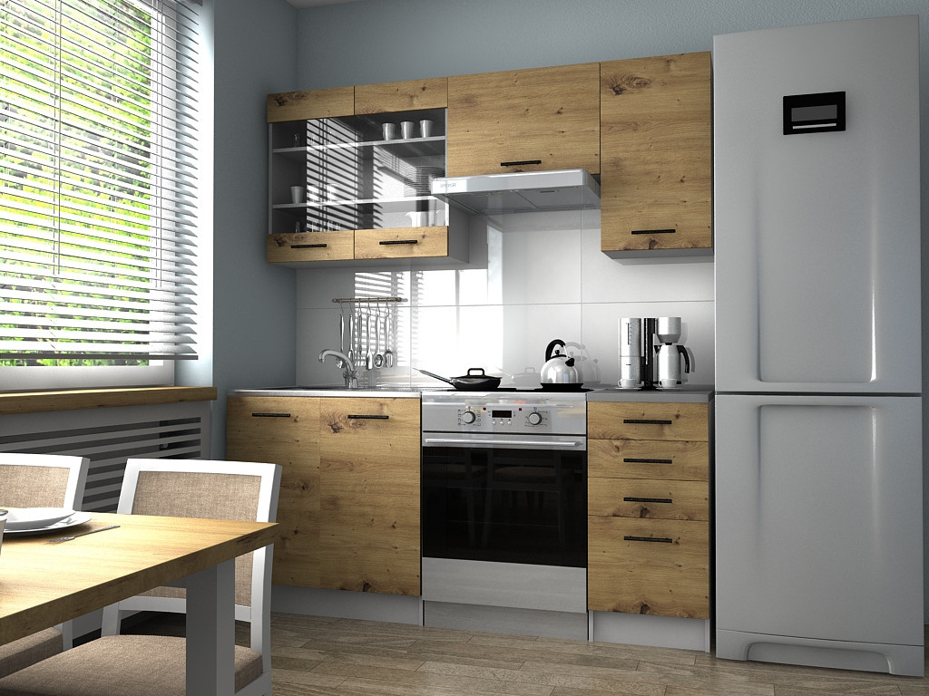 Kuchyňská linka Pamis je ideální volbou pro Vaši kuchyň. Je vyrobená z lamina, které je odolné a snadné na údržbu. Díky svým rozměrům je vhodná do garsonek a malometrážních kuchyní. Skříňky si můžete sestavit libovolně. Skříňky nabízejí dostatek úložného prostoru. Kuchyňská linka je dodávaná v demontu. Součástí balení je montážní plánek včetně všech potřebných spojovacích materiálů. Cena je uvedena za sestavu vyobrazenou na úvodní fotografii BEZ PRACOVNÍ DESKY. Vyobrazené spotřebiče, dřez a dekorace nejsou v ceně.