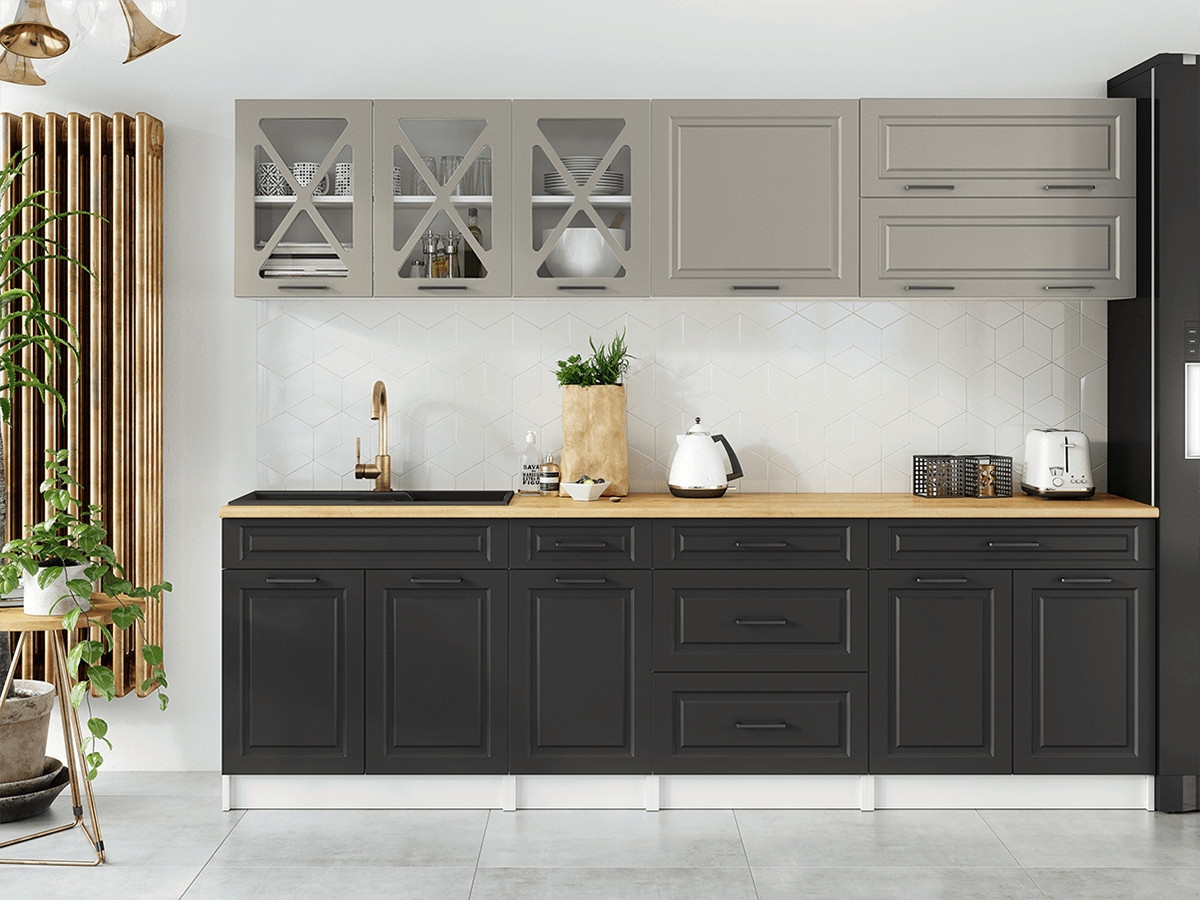 Kuchyňská linka Tyra je vyrobená ve velmi oblíbeném skandinávském stylu, který se hodí do kuchyně v paneláku i v rodinném domě. Tento styl má jedinečnou schopnost proměnit Vaši kuchyň v útulnou a zároveň funkční místnost, kde bude radost vařit i péct. Kuchyňská linka Tyra nabízí dostatek úložného i pracovního prostoru. Všechny skříňky jsou samostatné, takže si je můžete sestavit tak, jak Vám to vyhovuje. Korpusy skříněk jsou vyrobené z lamina 18 mm s hranami ABS a dvířka jsou MDF 16mm. Všechny skříňky jsou dodávány v demontu. Součástí balení je montážní plánek včetně všech potřebných spojovacích materiálů. Cena je uvedena za sestavu vyobrazenou na úvodní fotografii BEZ PRACOVNÍ DESKY, s úchytkami, které jsou vyobrazeny v doplňkových fotografiích. Pracovní desku lze dokoupit nad každou skříňku zvlášť podle její šíře. Vyobrazené spotřebiče, dřez, baterie, doplňky a dekorace nejsou v ceně. Zobrazení barev na fotografii se může od skutečnosti lišit.