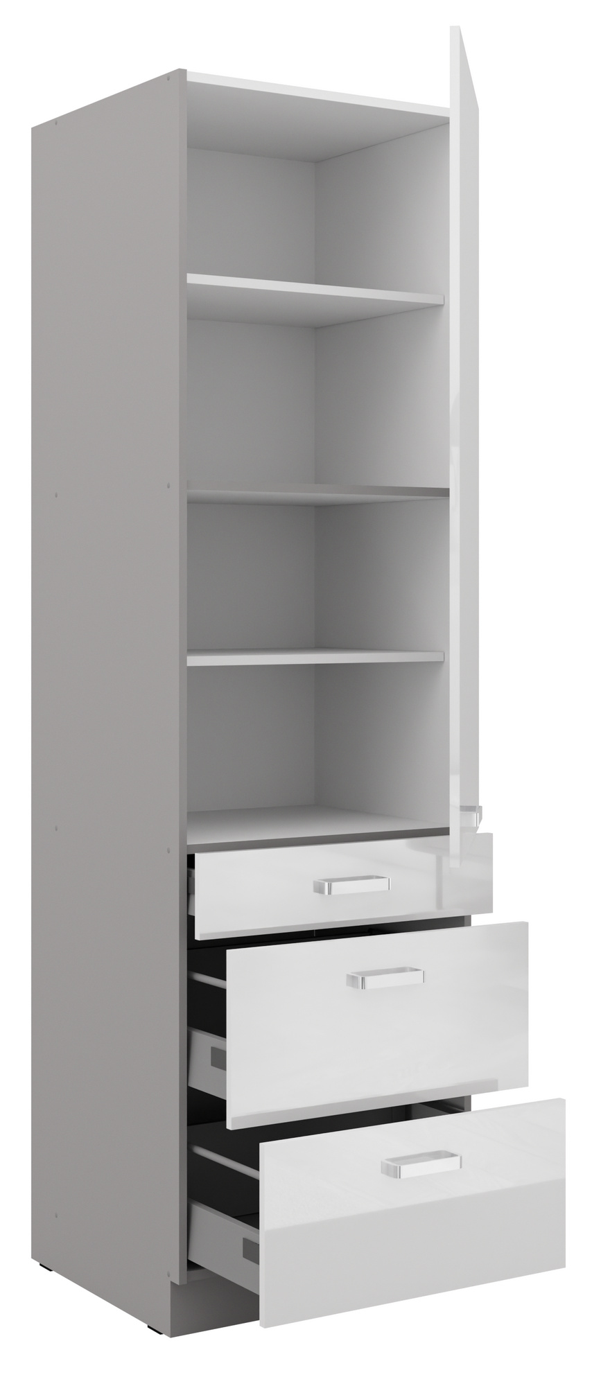 Kuchyňská skříň BIANCA - 60 DKS-210 3S 1F, Šedá / Bílý lesk