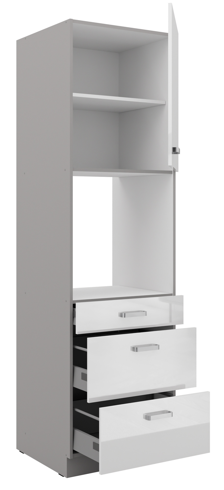 Kuchyňská skříň BIANCA - 60 DPS-210 3S 1F, Šedá / Bílý lesk