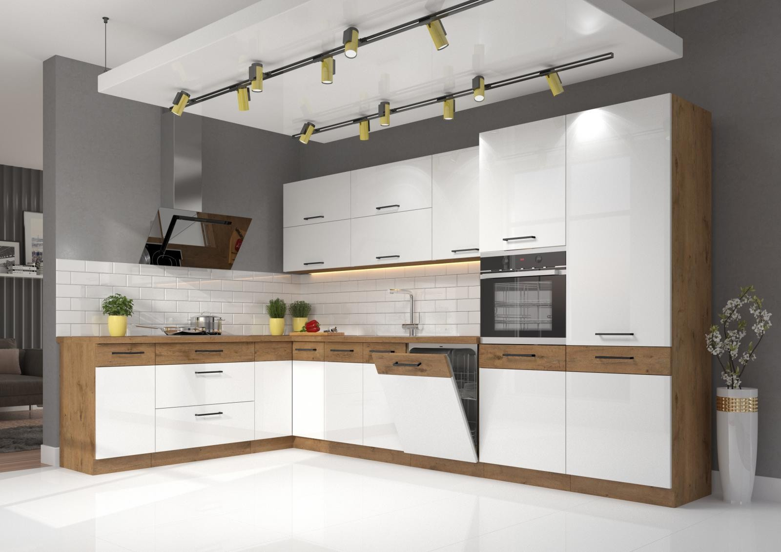 Kuchyňská potravinová skříň s prostorem pro vestavnou troubu a mikrovlnou troubu 60DPM-210-2F je vyrobena z lamina v dekoru dub lancelot v kombinaci s bílým vysokým leskem. Tato skříň má 2 dvířka, uvnitř spodní skříňky je 1 police. Nabízí dostatek úložného prostoru nejen na potraviny. Prohlédněte si širokou nabídku skříněk a vytvořte si kuchyň dle vlastních představ. Může být rohová, rovná, krátká i dlouhá. Fantazii se meze nekladou. V doplňkových fotografiích najdete pro inspiraci fotky kuchyní, které jsou z těchto skříněk sestaveny. Skříňka je dodávaná v demontu. Součástí je montážní plánek včetně všech potřebných spojovacích materiálů.
