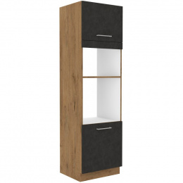 Vysoká kuchyňská skříň je určena pro vestavěnou mikrovlnou troubu a vestavěnou troubu. Vrchní skříňka nad skříní má zabudovanou jednu polici. Skříň je vyrobena z lamina tloušťky 16 mm barvy matera mat a bude dalším krásným kouskem ve Vaší kuchyňské sérii. Korpus skříňky je v provedení dub lancelot. Na dvířkách jsou plastové úchytky délky 192mm (mohou být donány i kovové) a dveře jsou vybaveny systémem tichého zavírání. Skříňka je vyrobena z kvalitních MDF desek. Poskládejte si z naší bohaté nabídky skříněk moderní a designovou kuchyň podle Vašich představ. Skříňka je dodávaná v demontu. Součástí je montážní plánek včetně všech potřebných spojovacích materiálů.