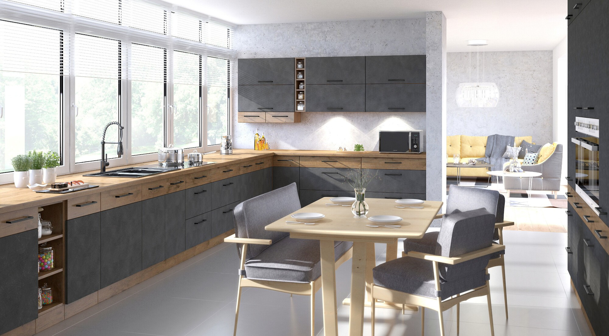 - Kuchyně ARONA - Černý mat/Kašmír
