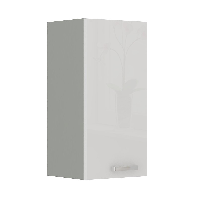 Kuchyňská skříňka je vyrobena z lamina tloušťky 16 mm bílé lesklé barvy. Korpus skříňky je v šedém provedení. Skříňka je vyrobena z kvalitních MDF desek a uvnitř najdete dvě police, které poskytnou dostatek místa. Skříňka má kovový úchyt (délka 135mm) a dvířka jsou vybavena systémem tichého zavírání. Poskládejte si z naší bohaté nabídky skříněk moderní a designovou kuchyň podle Vašich představ. V doplňkových fotografiích najdete pro inspiraci fotky kuchyní, které jsou z těchto skříněk sestaveny. Skříňka je dodávaná v demontu. Součástí je montážní plánek včetně všech potřebných spojovacích materiálů.