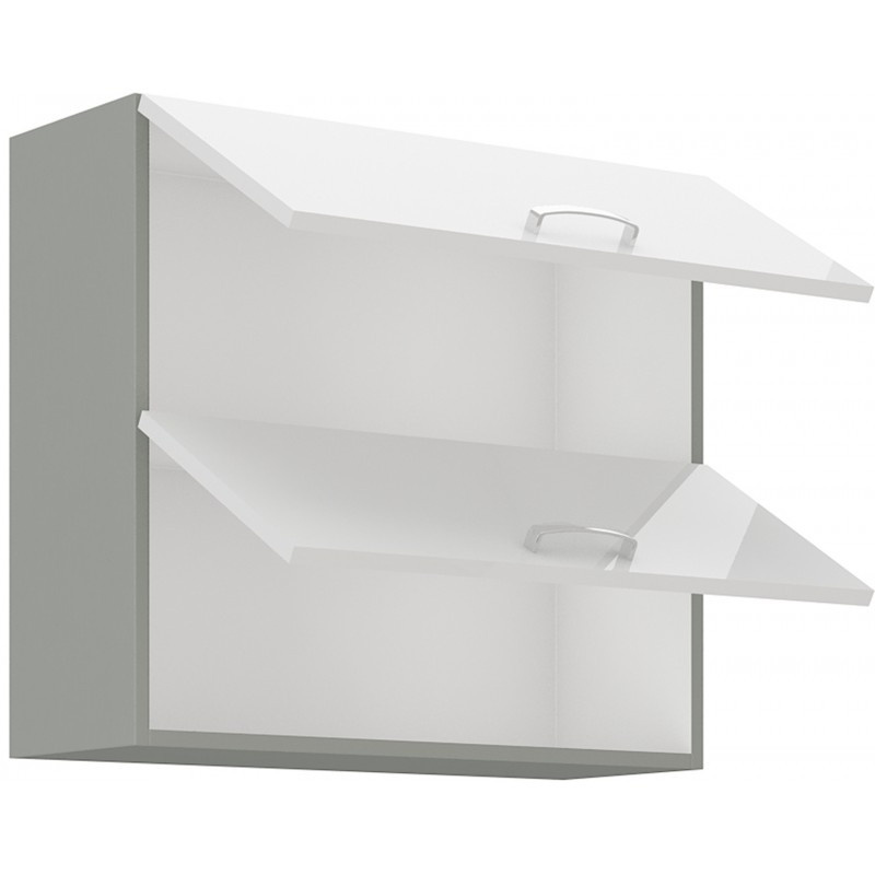 Kuchyňská horní skříňka BOLZANO 80-GU-72-2F, Bílý lesk/Šedá