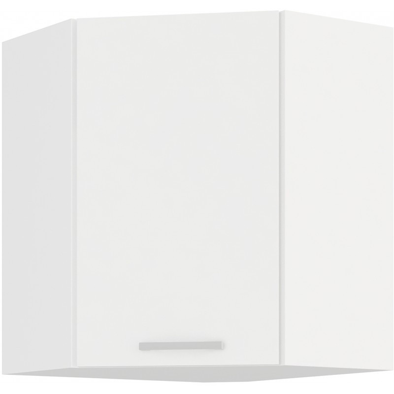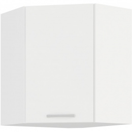 Tato elegantně zkosená horní kuchyňská skříňka dodá Vaší kuchyni jiskru a šmrnc. Je vyrobena z lamina tloušťky 16 mm bílé barvy. Skvěle doplní další kuchyňský nábytek z této série a ve Vaší kuchyni nesmí chybět. Skříňka je vyrobena z kvalitních MDF desek a dvě vnitřní police Vám poskytnou dostatek úložného prostoru. Skříňka má kovový nebo plastový úchyt (délka 140 mm) a dvířka jsou vybavena systémem tichého zavírání. Poskládejte si z naší bohaté nabídky skříněk moderní a designovou kuchyň podle Vašich představ. Skříňka je dodávaná v demontu. Součástí je montážní plánek včetně všech potřebných spojovacích materiálů.