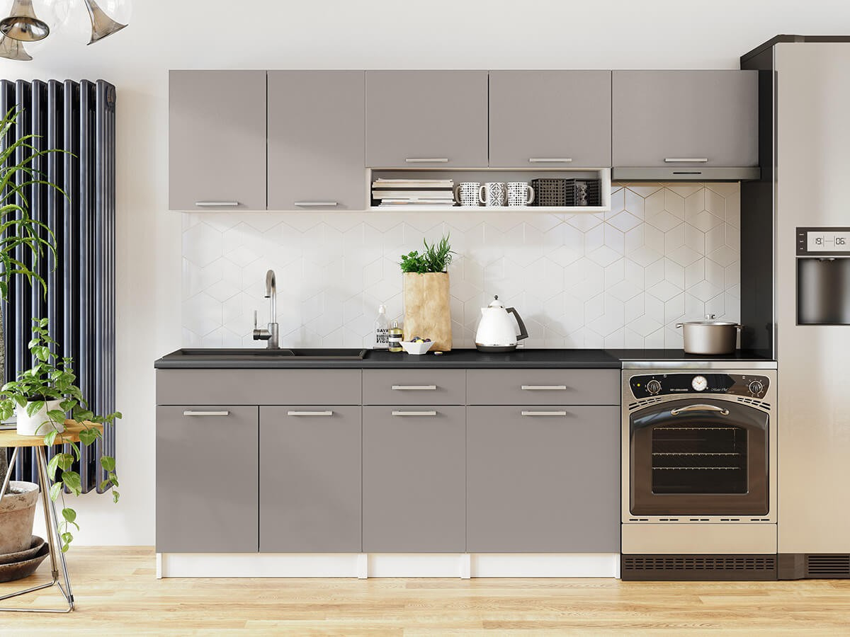Moderní kuchyňská skříňka, kterou je možné objednat v matu nebo ve vysokém lesku. Sokl a korpusy skříněk jsou v bílé barvě. Úchyty jsou plastové v šedém barevném provedení. Skříňky jsou vyrobeny z foliované MDF ve vysokém lesku. Potravinová skříň je uvnitř policová, skříňky se otevírají do strany. Dvířka jsou univerzální pravolevá. Barvu si můžete vybrat ze vzorníku viz obrázky v doplňkových fotografiích. Kuchyňské skříňky Femme jsou kompatibilní ke kuchyním Devil, Dakota, Alien, Nikaia, Gigue, Carrie, Lars, Sanader a Taisa. Svou vysněnou kuchyň si můžete sestavit buď z jednotlivých skříněk nebo skříňky dokoupit ke kuchyňské sestavě. Skříňka je dodávána v demontu.