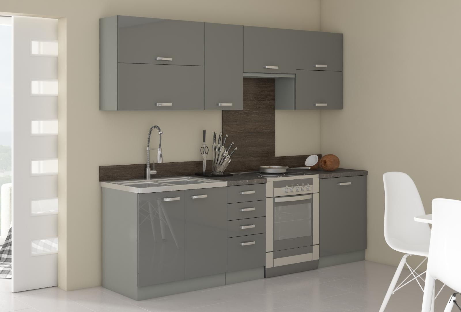 - Kuchyně BIANCA - Šedá/Bílý Lesk