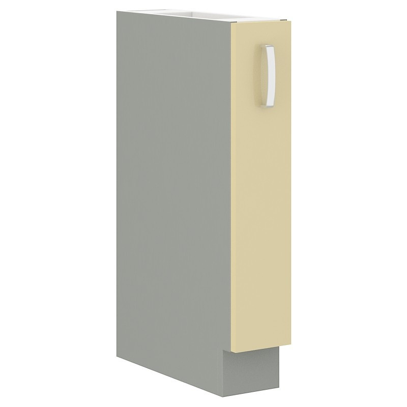 Spodní kuchyňská skříňka je vyrobena z lamina tloušťky 16 mm krémové lesklé barvy. Korpus skříňky je v šedém provedení. Dvířka jsou vybavena lesklou kovovou úchytkou (délka 135mm) a systémem tichého zavírání. Skříňka je vyrobena z kvalitních MDF desek. Je vybavena nerezovým košem Cargo se dvěmi policemi. Poskládejte si z naší bohaté nabídky skříněk moderní a designovou kuchyň podle Vašich představ. Skříňka je dodávaná v demontu. Součástí je montážní plánek včetně všech potřebných spojovacích materiálů.