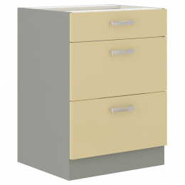 Kuchyňská dolní skříňka KARPO 60 D 3S BB, krémový lesk/šedá