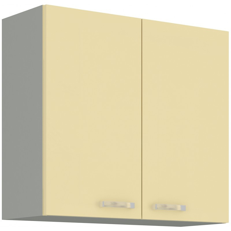 Horní dvoudvéřová kuchyňská skříňka je vyrobena z lamina tloušťky 16 mm lesklé krémové barvy. Korpus je v šedém provedení. Dvířka mají lesklý kovový úchyt (délka 135 mm). Jsou vybavena systémem tichého zavírání. Vnitřek skříňky obsahuje celkem dvě police, které Vám poskytnou dostatek místa k uskladnění všeho, co budete v kuchyni potřebovat. V doplňkových fotografiích najdete další možnosti sestavení Vaši kuchyně. Nechte se inspirovat a poskládejte si z naší bohaté nabídky skříněk moderní a designovou kuchyň podle Vašich představ. Skříňka je dodávaná v demontu. Součástí je montážní plánek včetně všech potřebných spojovacích materiálů.