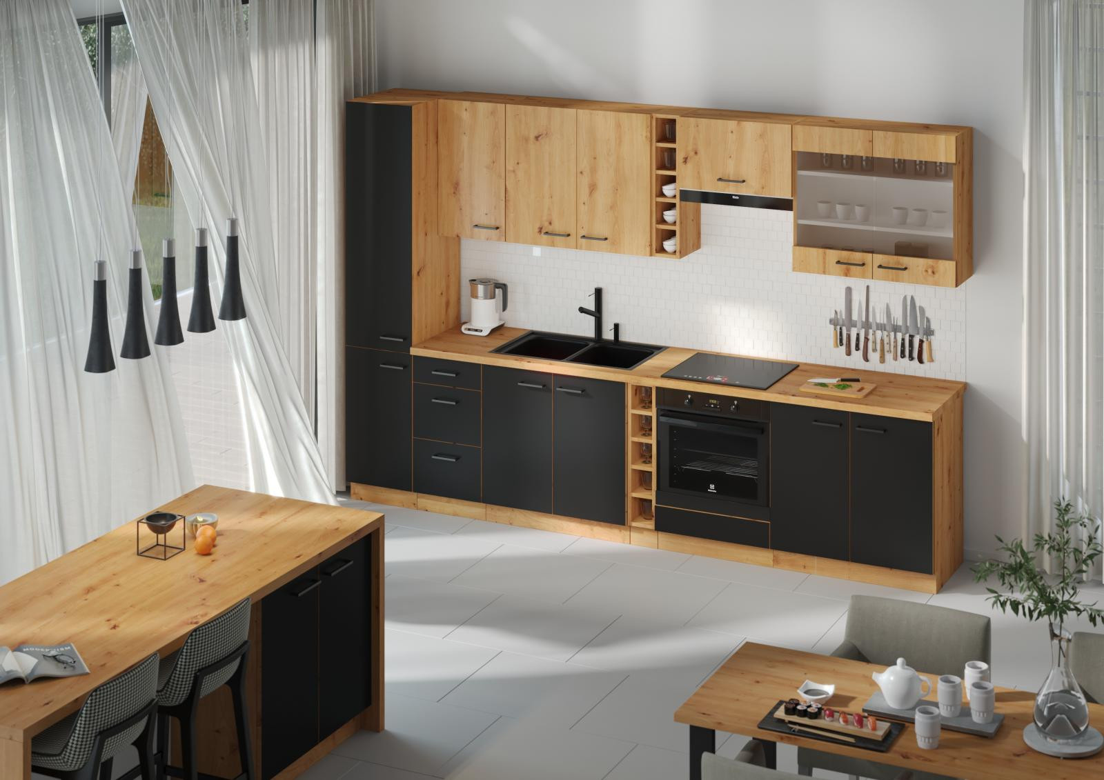 - Kuchyně ARONA - Černý mat/Kašmír