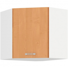 Vrchní rohová kuchyňská skříňka Sally 58x58GN je vyrobena z lamina tloušťky 16 mm bílé barvy a s dvířky v odstínu olše. Vyberte si z naší nabídky skříněk a vytvořte si kuchyň dle vlastích představ. Může být rohová, rovná, krátká i dlouhá. Fantazii se meze nekladou. V doplňkových fotografiích najdete pro inspiraci fotky kuchyní, které jsou z těchto skříněk sestaveny. Skříňka je dodávaná v demontu. Součástí je montážní plánek včetně všech potřebných spojovacích materiálů.