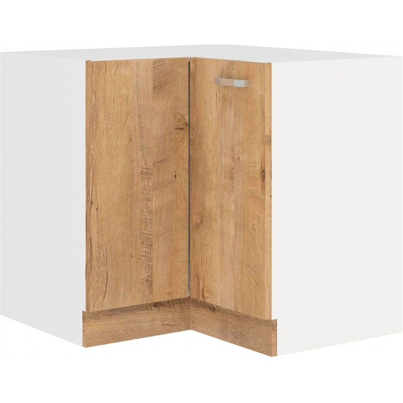 Rohová kuchyňská skříňka Sally 89x89 DN je vyrobena z lamina tloušťky 16 mm bílé barvy a s dvířky v odstínu dub lefkas. Vyberte si z naší široké nabídky skříněk a vytvořte si kuchyň dle vlastních představ. Může být rohová, rovná, krátká i dlouhá. Fantazii se meze nekladou. V doplňkových fotografiích najdete pro inspiraci fotky kuchyní, které jsou z těchto skříněk sestaveny. Skříňka je dodávaná v demontu bez pracovní desky. Součástí je montážní plánek včetně všech potřebných spojovacích materiálů.