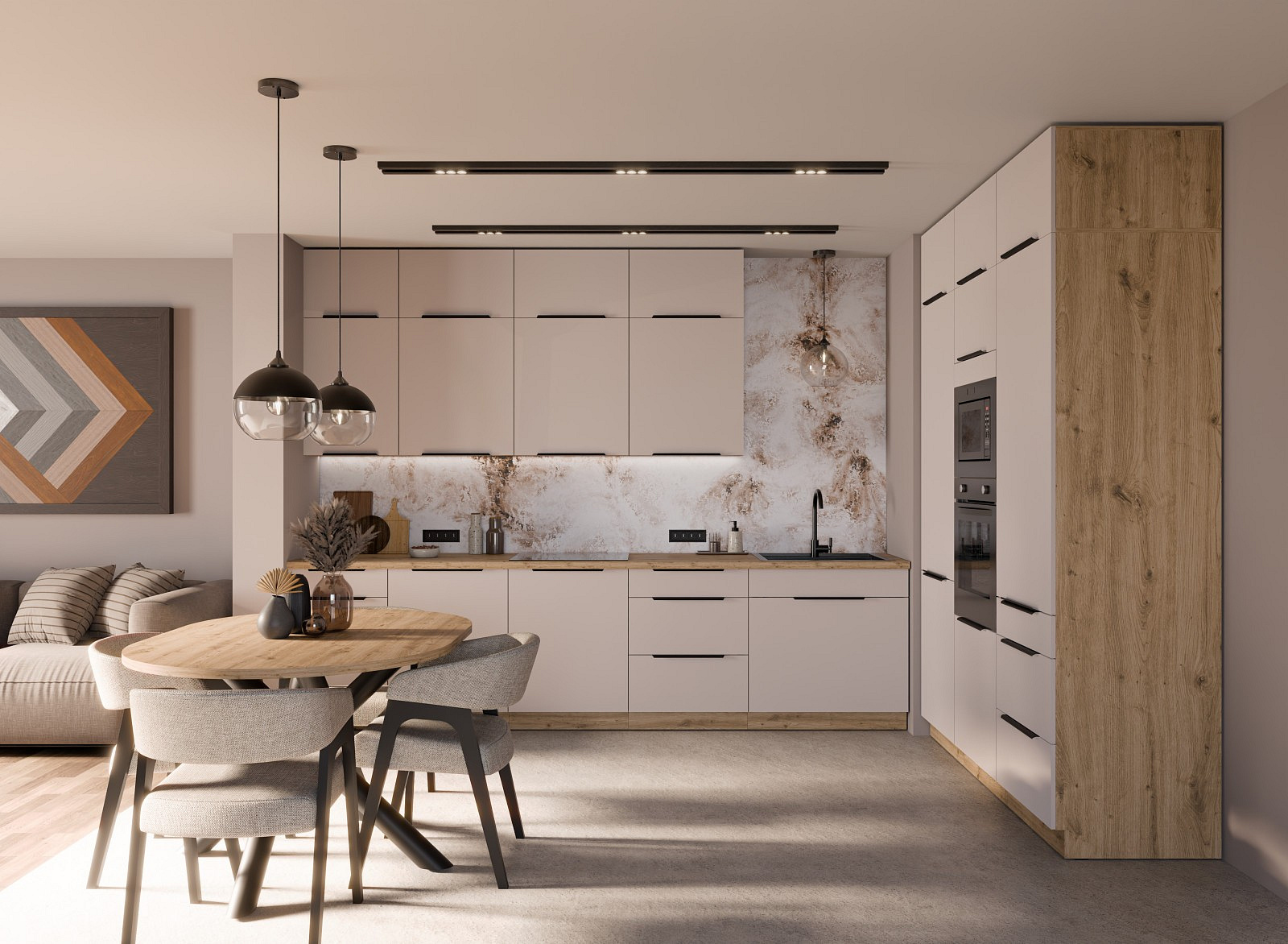 Kolekce modulárních kuchyňských skříněk Selva okouzlí harmonickým designem a moderní elegancí. Dvířka v dekoru kašmír v kombinaci s přírodními detaily dodají interiéru svěžest a vytvoří jedinečnou atmosféru, díky níž budou každodenní chvíle v kuchyni ještě příjemnější. Z bohaté nabídky série Selva si můžete sestavit kuchyň přesně podle vašich představ a prostorových možností.