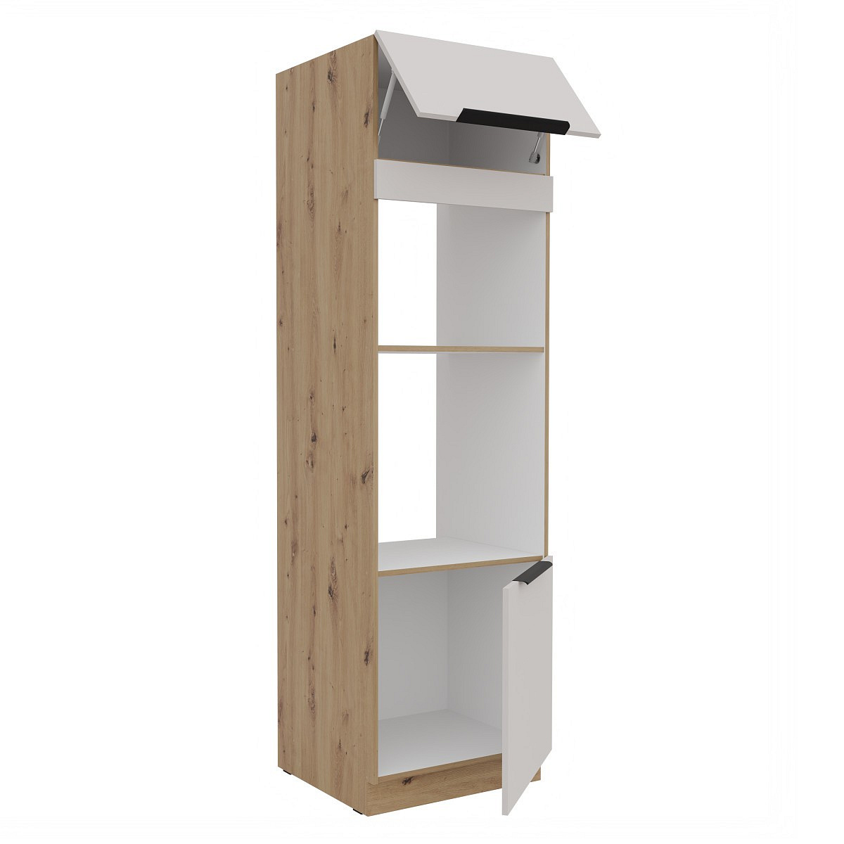 Dvířka skříňky jsou osazena panty s tichým dovíráním, vrchní dvířka jsou výklopná. Skříňka je dodávaná v demontu, součástí je montážní plánek včetně všech potřebných spojovacích materiálů.