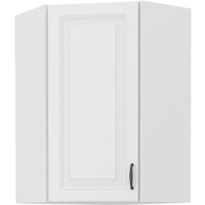 Tato elegantně zkosená horní kuchyňská skříňka dodá Vaší kuchyni jiskru a šmrnc. Je vyrobena z lamina tloušťky 16 mm v bílé barvě. Skvěle doplní další kuchyňský nábytek z této série a ve Vaší kuchyni nesmí chybět. Skříňka je vyrobena z kvalitních MDF desek a tři vnitřní police Vám poskytnou dostatek úložného prostoru. Skříňka má černý kovový úchyt (délka 124 mm) a dvířka jsou vybavena systémem tichého zavírání. Poskládejte si z naší bohaté nabídky skříněk moderní a designovou kuchyň podle Vašich představ. Skříňka je dodávaná v demontu. Součástí je montážní plánek včetně všech potřebných spojovacích materiálů.