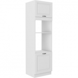 Vysoká kuchyňská skříň je určena pro vestavěnou mikrovlnou troubu a vestavěnou troubu. Spodní skříňka má zabudovanou jednu polici. Skříň je vyrobena z lamina tloušťky 16 mm bílé barvy a bude dalším krásným kouskem ve Vaší kuchyňské sérii. Na dvířkách jsou černé kovové úchytky délky 124mm a dále jsou vybaveny systémem tichého zavírání. Skříňka je vyrobena z kvalitních MDF desek. Poskládejte si z naší bohaté nabídky skříněk moderní a designovou kuchyň podle Vašich představ. Skříňka je dodávaná v demontu. Součástí je montážní plánek včetně všech potřebných spojovacích materiálů.