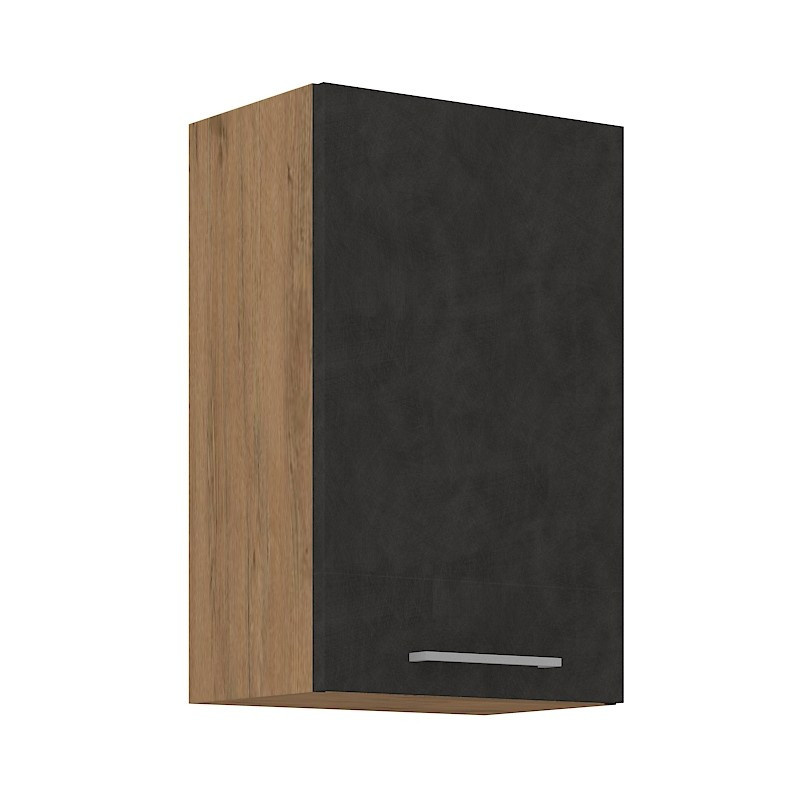 Tato vrchní kuchyňská skříňka je vyrobena z lamina tloušťky 16 mm barvy matera mat. Korpus skříňky je v provedení dub lancelot a vnitřek skříňky má bílou barvu. Skříňka je vyrobena z kvalitních MDF desek a uvnitř najdete dvě police, které poskytnou dostatek místa. Dvířka mají kovový úchyt (délka 192mm) a jsou vybavena systémem tichého zavírání. Lze je namontovat jako pravé nebo jako levé. Poskládejte si z naší bohaté nabídky skříněk moderní a designovou kuchyň podle Vašich představ. V doplňkových fotografiích najdete pro inspiraci fotky kuchyní, které jsou z těchto skříněk sestaveny. Skříňka je dodávaná v demontu. Součástí je montážní plánek včetně všech potřebných spojovacích materiálů.