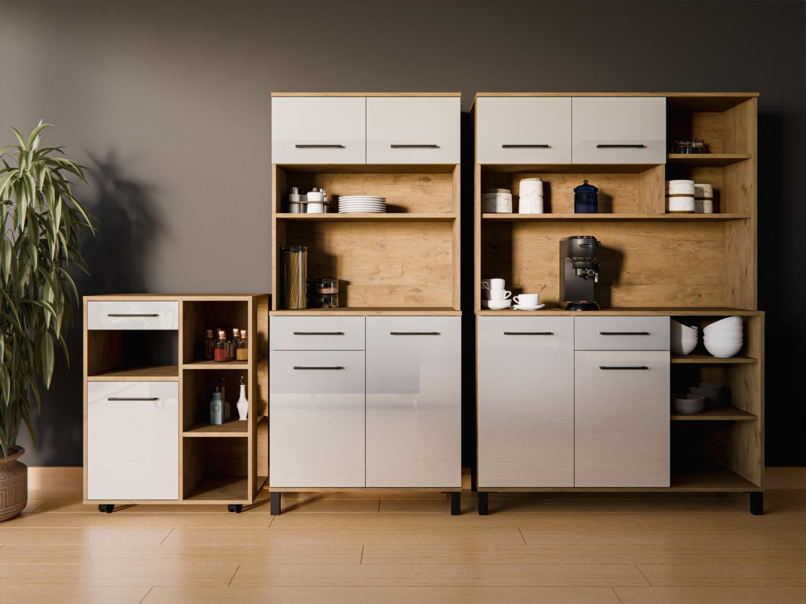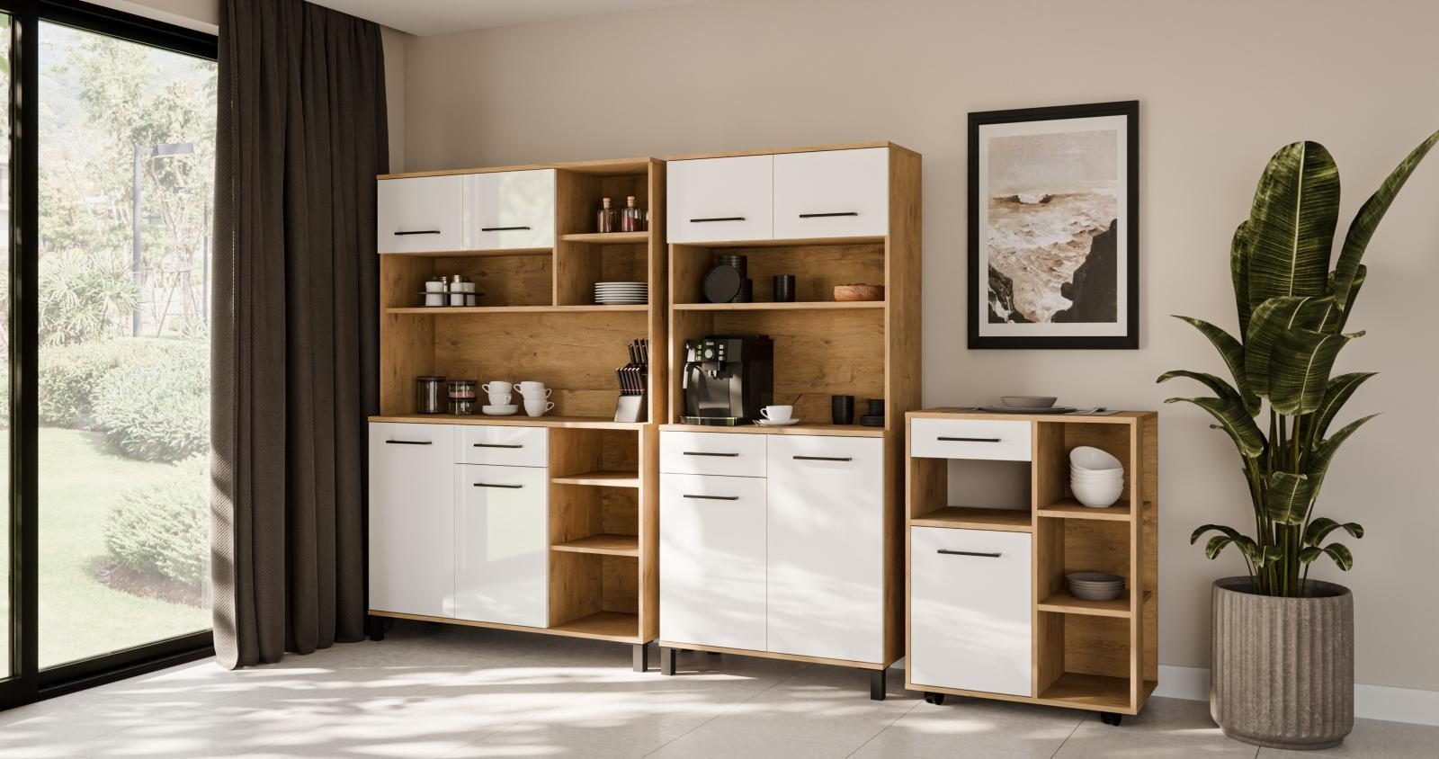Kuchyňská skříňka Vega Bufet je ideální volbou pokud hledáte pohodlí při používání a nadčasový design. Dokonale propojuje estetiku s promyšlenou ergonomií, takže nábytek působí jako harmonický celek. Každý detail byl navržen s ohledem na komfort, funkčnost a eleganci, aby každodenní používání bylo stejně příjemné jako inspirující.