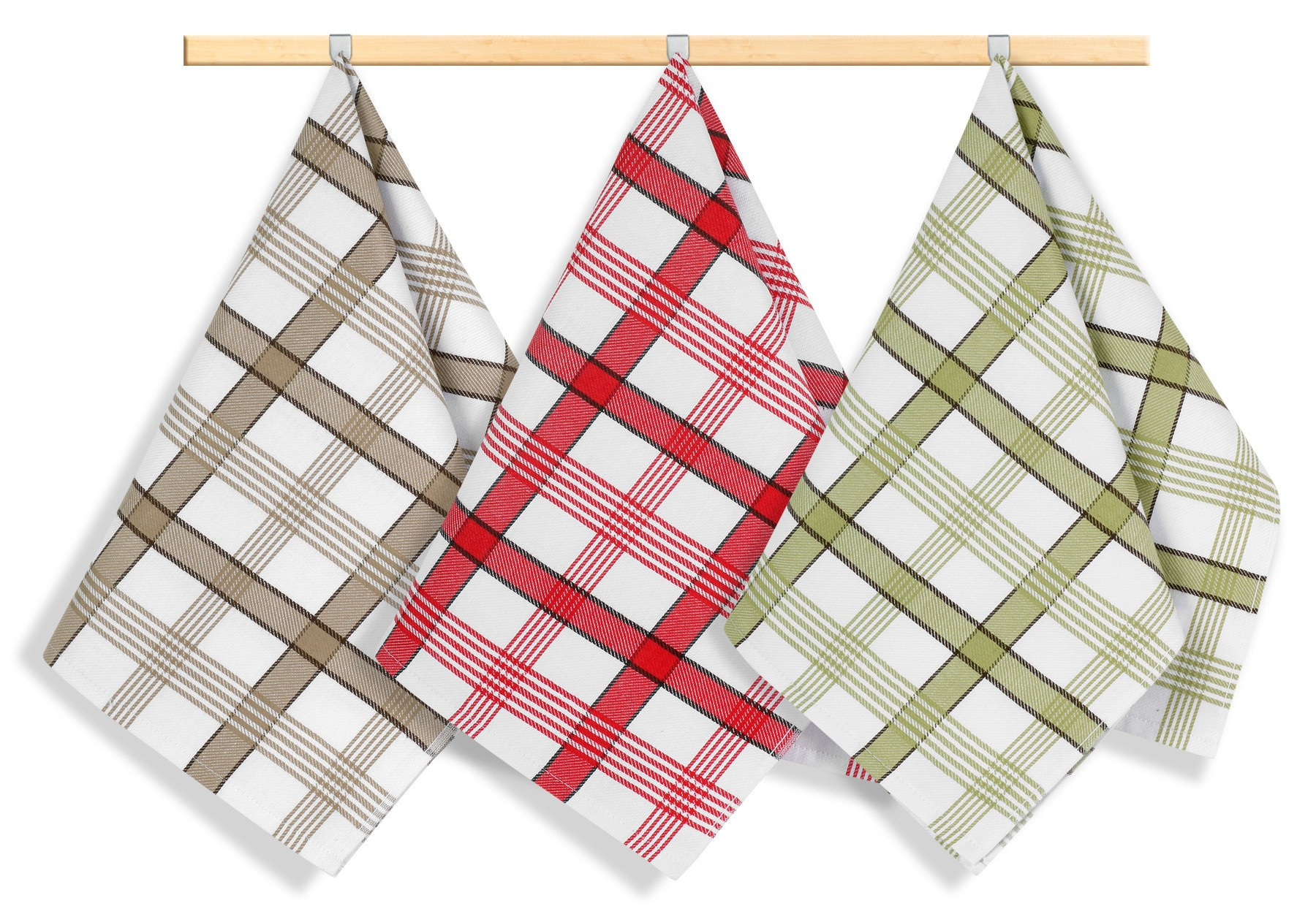 Kuchyňská utěrka 50x70cm béžové, zelené, červené káro