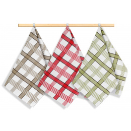 Kuchyňské utěrky jsou vyrobeny ze 100% bavlny o plošné gramáži 240g/m2. Jsou dostatečně velké a velmi dobře savé, v různých barevných variacích a dezénech. 100% bavlna zajišťuje dostatečnou savost použitého materiálu. Balení obsahuje tři kusy utěrek, barevnost utěrek může být odlišná oproti vyobrazení.