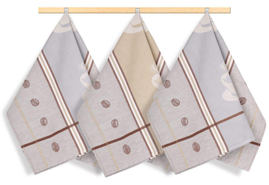 Kuchyňské utěrky jsou vyrobeny ze 100% bavlny o plošné gramáži 240g/m2. Jsou dostatečně velké a velmi dobře savé, v různých barevných variacích a dezénech. 100% bavlna zajišťuje dostatečnou savost použitého materiálu. Balení obsahuje tři kusy utěrek, barevnost utěrek může být odlišná oproti vyobrazení.