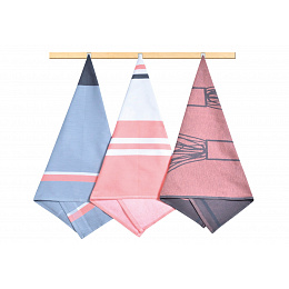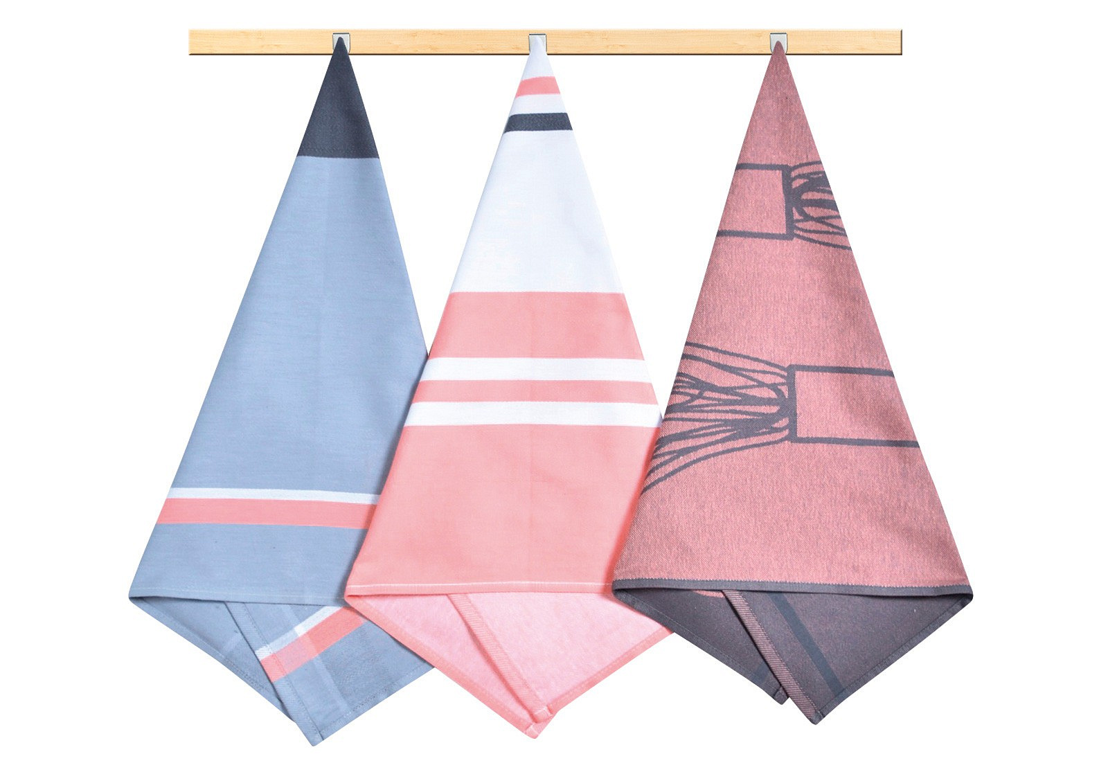 Kuchyňské utěrky jsou vyrobeny ze 100% bavlny o plošné gramáži 240g/m2. Jsou dostatečně velké a velmi dobře savé, v různých barevných variacích a dezénech. 100% bavlna zajišťuje dostatečnou savost použitého materiálu. Balení obsahuje tři kusy utěrek, barevnost utěrek může být odlišná oproti vyobrazení.