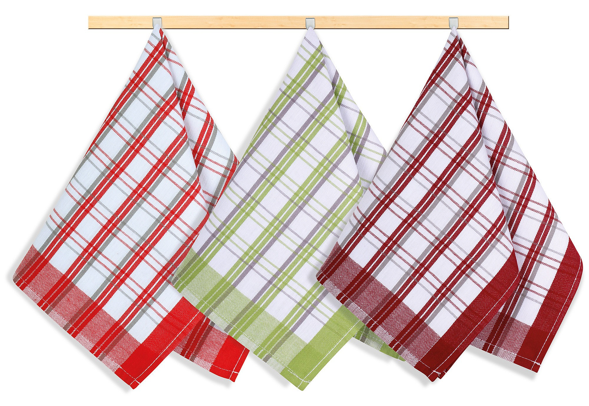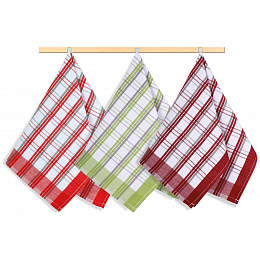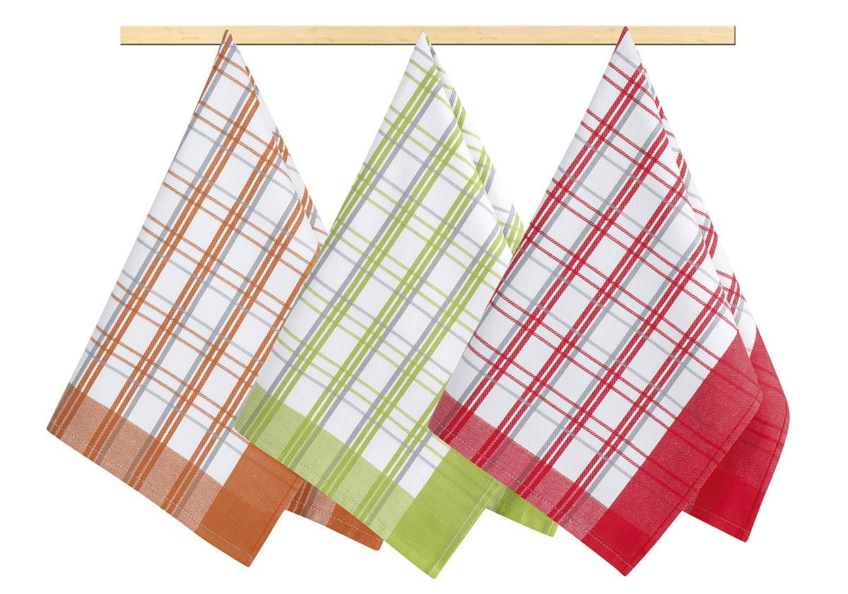 Kuchyňské utěrky jsou vyrobeny ze 100% bavlny o plošné gramáži 240g/m2. Jsou dostatečně velké a velmi dobře savé, v různých barevných variacích a dezénech. 100% bavlna zajišťuje dostatečnou savost použitého materiálu. Balení obsahuje tři kusy utěrek, barevnost utěrek může být odlišná oproti vyobrazení.