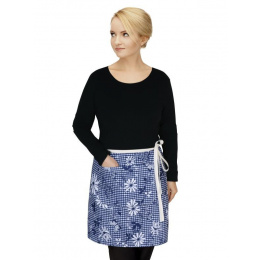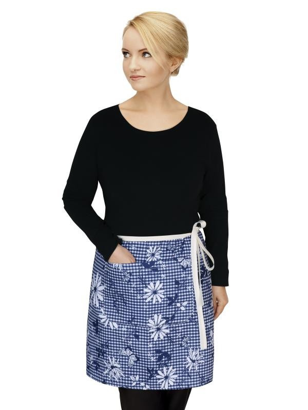 Kuchyňská zástěra do pasu modrá kostička s květem