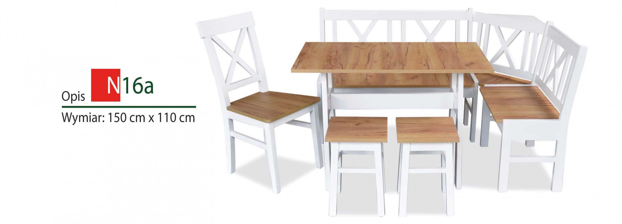 Kuchyňský kout N16A je vyroben z kvalitních a odolných materiálů, které zaručují dlouhou životnost a snadnou údržbu. Korpus skříněk je vyroben z laminované dřevotřísky, která je odolná proti vlhkosti a poškrábání. Dvířka skříněk jsou potažena fólií s vysokou odolností proti oděru a UV záření.