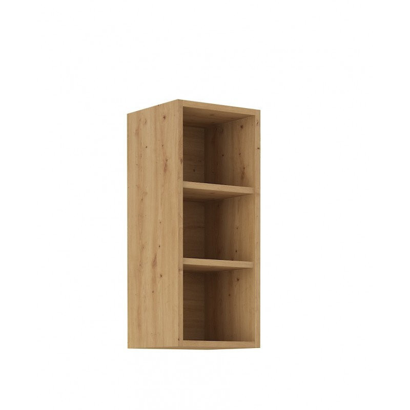 Tento horní otevřený regál bude příjemným oživením Vaší kuchyně. Je vyroben z lamina tloušťky 16 mm barvy dub artisan a je složen ze dvou praktických polic. V doplňkových fotografiích naleznete další možnosti a inspiraci k sestavení Vaší vysněné kuchyně. Nechte se inspirovat a poskládejte si z naší bohaté nabídky skříněk moderní a designovou kuchyň podle Vašich představ. Skříňka je dodávaná v demontu. Součástí je montážní plánek včetně všech potřebných spojovacích materiálů.