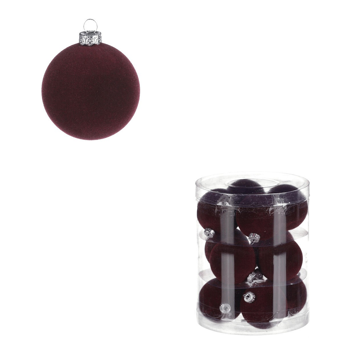 Kulaté sametové ozdoby - pr. 5 cm, bordó, cena za balení (12 ks)