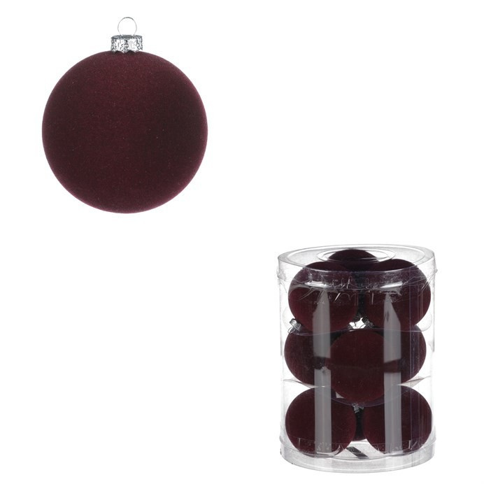 Kulaté sametové ozdoby - pr. 6 cm, bordó, cena za balení (9 ks)