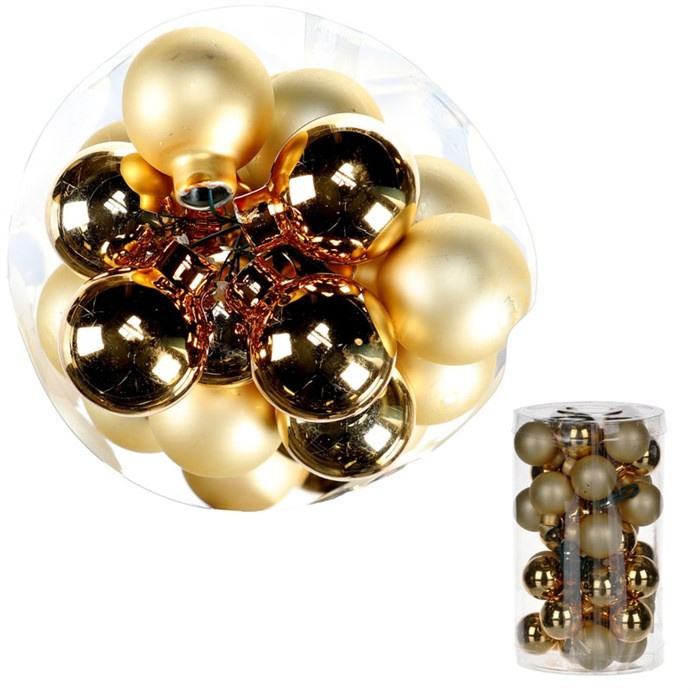 Kulaté skleněné ozdoby - pr. 4 cm, zlaté, cena za balení (18 ks)