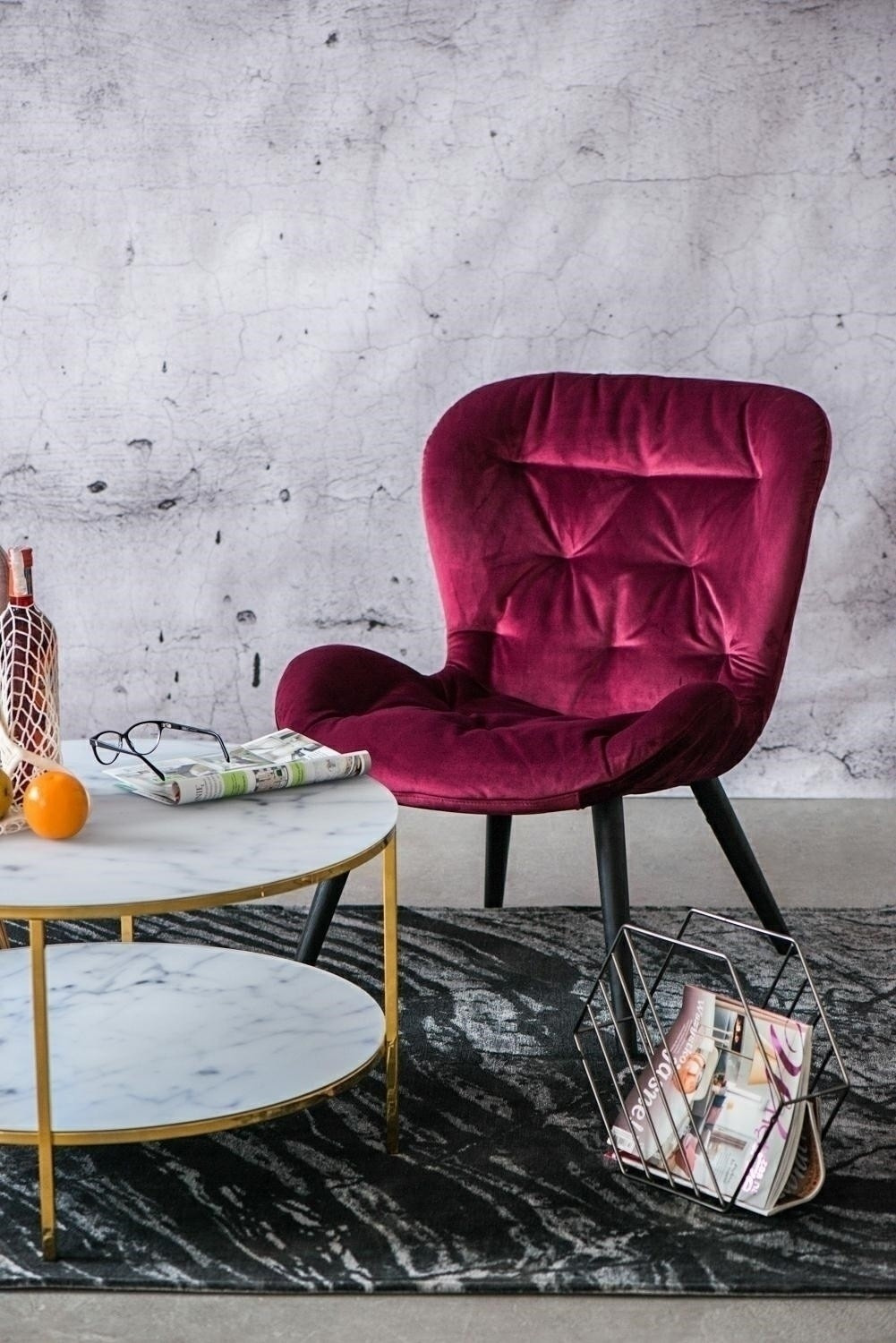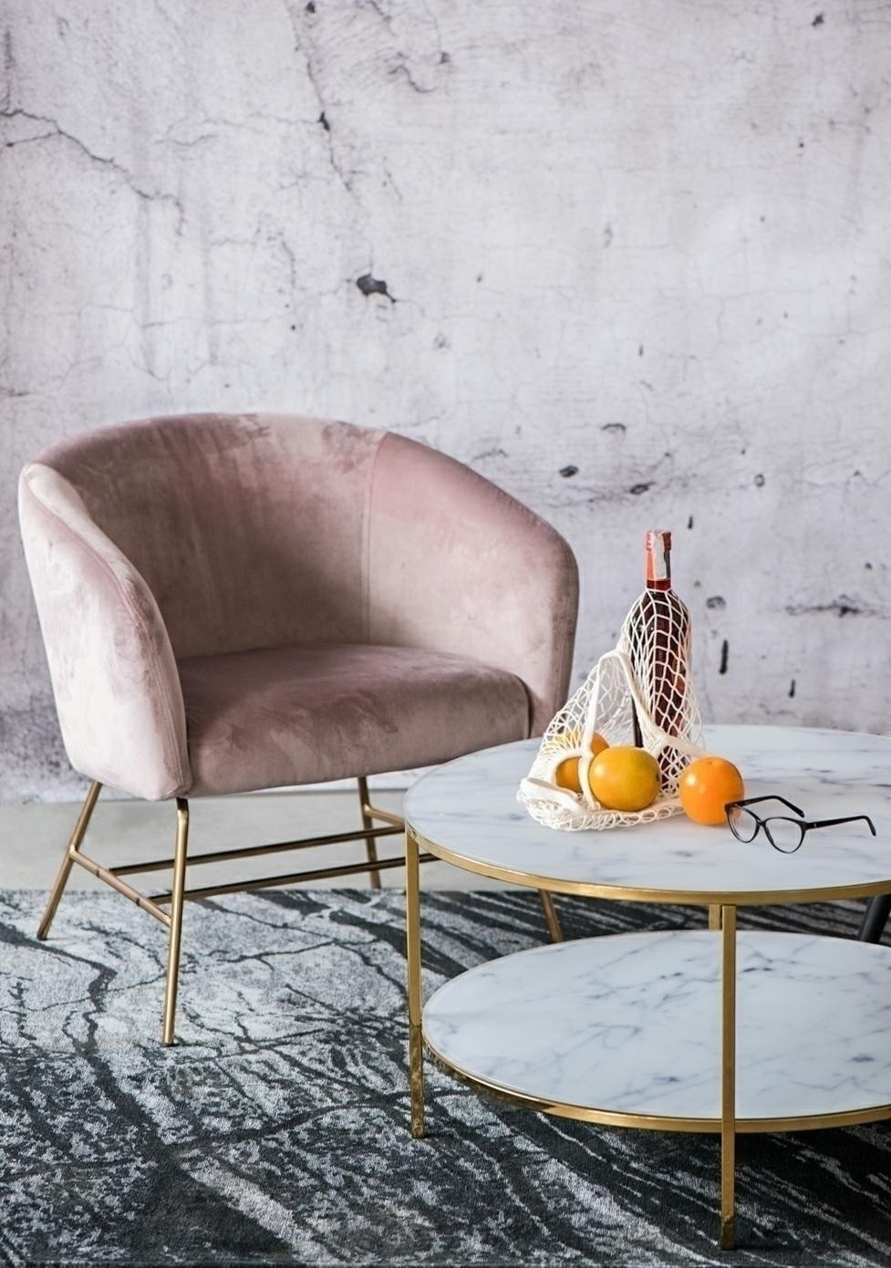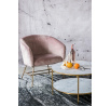 Stolek Alisma kulatý s policí byl vyroben ze skla spojeného se zlatým kovovým podstavcem. Geometrie spolu s mramorovým dokončením je moderní design, který odpovídá trendům. Skleněná deska o tloušťce 6 mm je odolná a pevná.