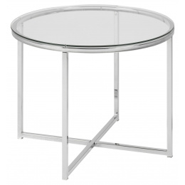 Kulatý stůl Cross je vyroben z chromovaného kovu a průhledného tvrzeného skla, které tvoří desku stolu. Stolek se dokonale uplatní v industriálních, loftových a moderních interiérech, přinášejíc eleganci a styl. Stolek vyžaduje montáž, maximální zatížení je 30 kg, není vhodný pro venkovní použití. Osvědčí se v komerčních, kancelářských, hotelových a domácích prostorách. Materiál desky: tvrzené průhledné sklo, materiál základny: kov
