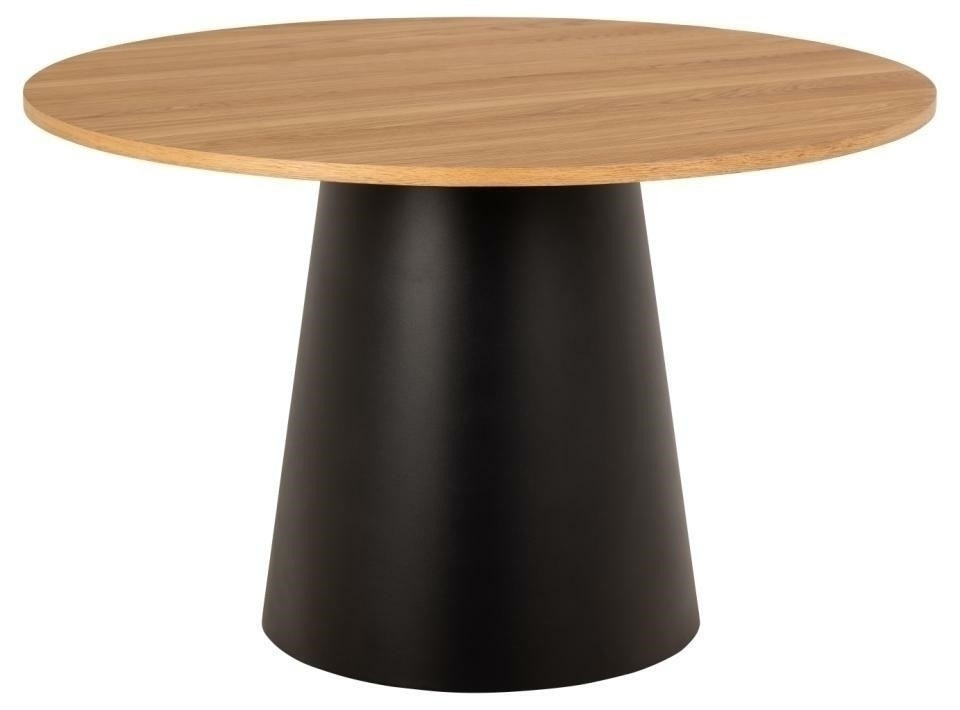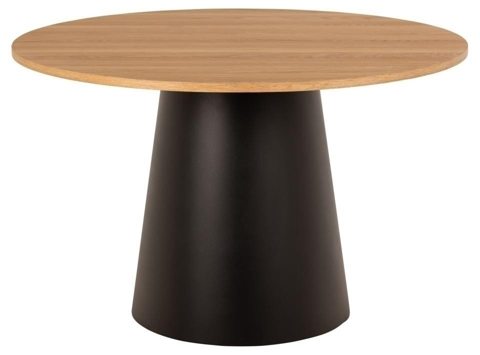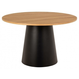 Kontrastní směs materiálů a proporcí činí tento stůl ideálním centrálním bodem, který tvoří základ jídelny. Pokrytý lakovanou dubovou dýhou, stůl s elegancí spočívá na pevné ocelové základně, což mu dodává sofistikovaný charakter. Přeměňte jídelnu v prostor, kde se každé jídlo stane příjemným zážitkem. Moderní jídelní stůl s vyváženými proporcemi. Kulatý tvar pomáhá optimalizovat prostor v menších domech. Štíhlá deska vyrobená z lakované dubové dýhy zajišťující přirozený vzhled. Solidní, černá základna vyrobená z hrubé oceli lakované práškovou barvou zajišťuje stabilitu a kontrast. Pohodlné místo pro 4 osoby. Navrženo designérem Lasse Cha Pedersenem Vyžaduje montáž Rozměry kartonů: 123x123x7,5 cm a 63x63x76 cm Hmotnosti kartonů: 20 kg a 17 kg