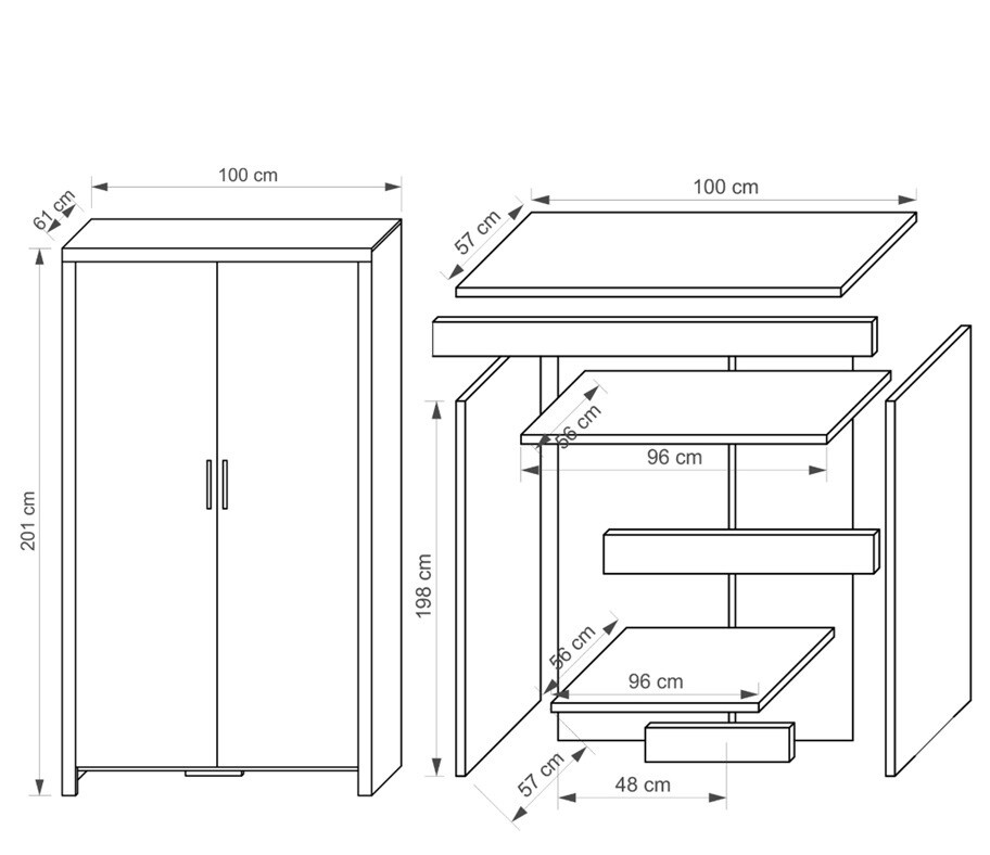 Skříň je dodávána v demontu. Součástí je montážní plánek včetně všech potřebných spojovacích materiálů.