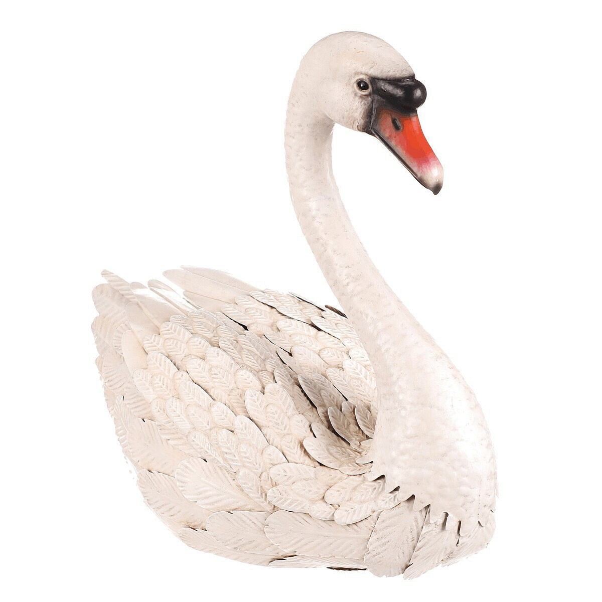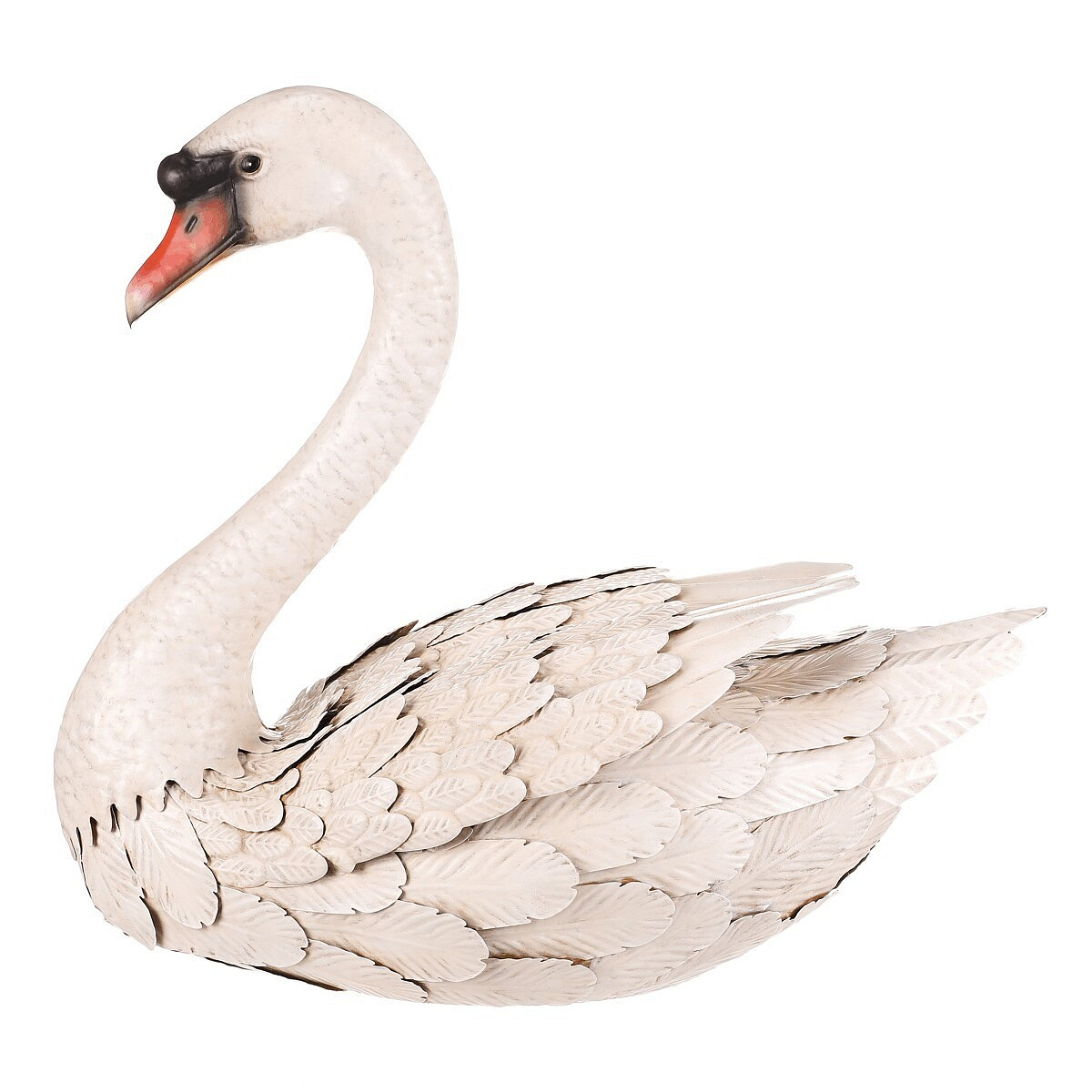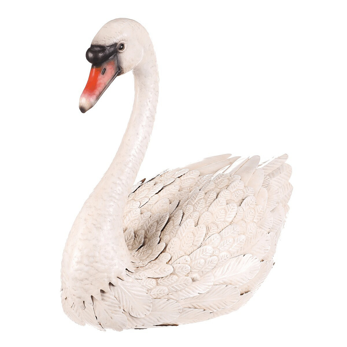 Zahradní dekorace ve tvaru labutě je vyrobena z kovu v bílém odstínu, který vytváří jemný a přirozený vizuální efekt. Detailní zpracování peří a elegantní zakřivení krku dodávají dekoraci realistický vzhled. Velikost L umožňuje výrazné umístění v zahradě, na terase nebo v interiéru. Dekorace je určena k postavení a díky pevnému kovovému provedení je stabilní a vhodná pro dlouhodobé venkovní použití. Vynikne jako stylový doplněk, který přináší klidnou atmosféru a přírodní motiv do prostoru.