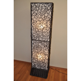 Lampa s kovovou konstrukcí a výpletem z přírodního ratanu. Stínítko je čalouněno látkou z vnitřní strany. | Lampa je určena do interiéru. Lampa je navržena pro použití LED žárovek či úsporných světelných zdrojů. V žádném případě nepoužívejte klasické žárovky, které jsou během provozu velice teplé. Velikost lampy je 46x20x200 cm Lampu můžeme dodat včetně vysoce úsporných LED žárovek. Tuto variantu s LED žárovkami naleznete ve variantách produktu.
