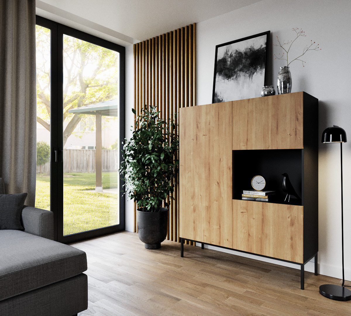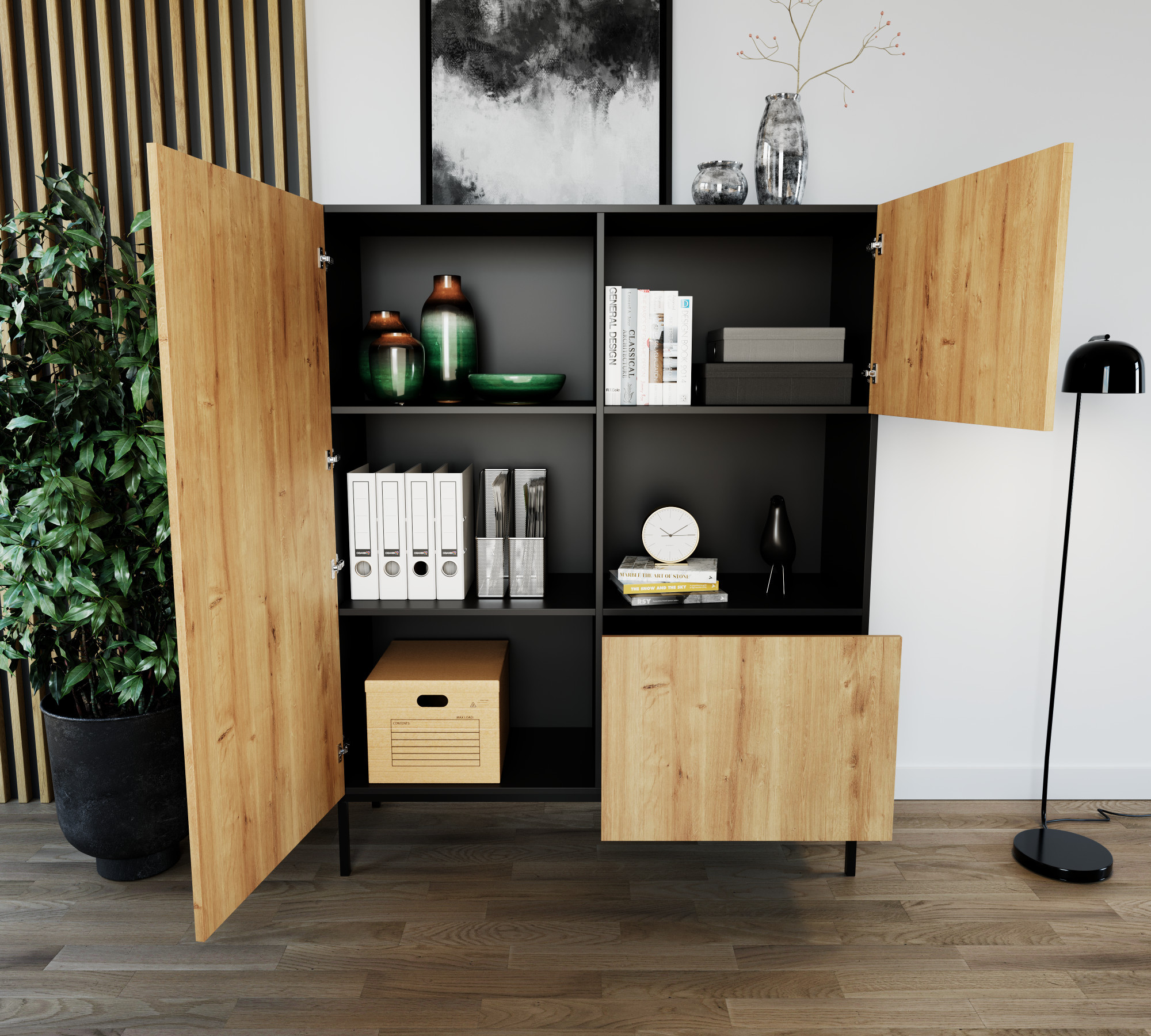 Vitrína LANZZI 120, Černý Mat/Dub Artisan