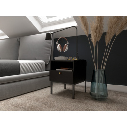 Noční stolek Lanzzi je skvělým společníkem jak k nízké, tak k vysoké posteli. Vše díky jeho teplému, nenápadnému designu a prostoru pro uložení nezbytností. Vyrobeno z MDF, má 20 centimetrů dlouhé černé kovové nohy a úložné prostory - zásuvku a výklenek. Zásuvka je namontována na snadno klouzavých pojezdech a má tichou funkci zavírání. Noční stolek Lanzzi je k dispozici ve dvou barevných variantách: kombinace řemeslného dubu a matné černé, a pouze matná černá, ale zdobená zlatou úchytkou pro otevírání zásuvky. První možnost využívá panty s funkcí push-to-open, takže stačí lehce zatlačit na přední část a zásuvka se otevře. Tímto způsobem byl v každém z modelů stolů zachován minimalistický styl. Noční stolek Lanzzi je malý, ale velmi praktický kus nábytku. Vybaven praktickou zásuvkou Výběr ze dvou barevných verzí Výběr zlatých úchytek nebo bezúchytkového otevíracího systému Výška: 50 cm Hloubka: 40 cm Šířka: 40 cm Hmotnost: 13 kg Plastová konfigurace: černá matná + dub artisan / černá matná + černá matná Barva rámu: černá Materiál: MDF deska Design nohou: kov Počet zásuvek: 1