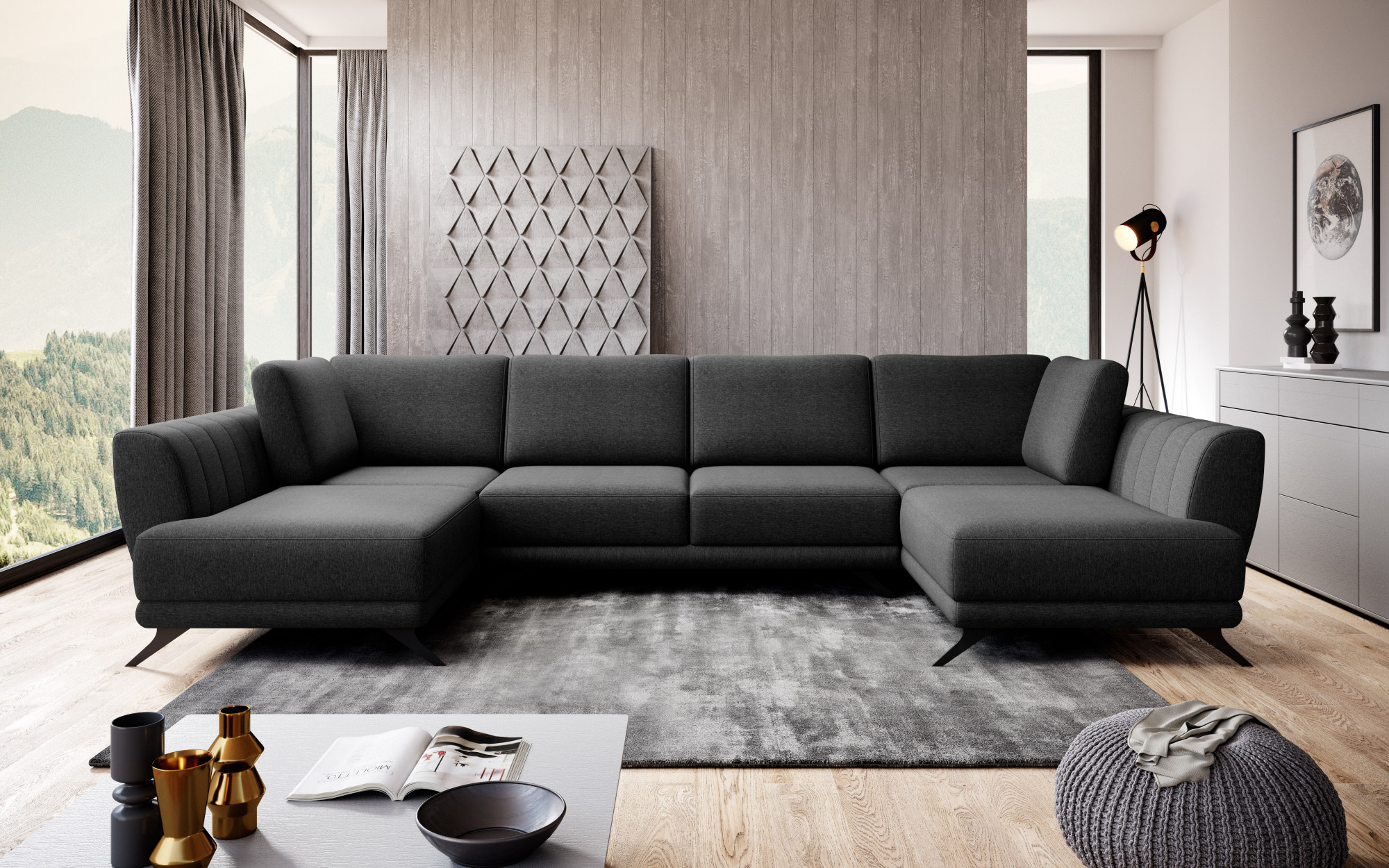 Rohová pohovka ve tvaru U Larco s funkcí spaní - elegantní a moderní kus obývacího nábytku během dne; plnohodnotná, pohodlná postel v noci. Po rozložení poskytuje roh spací plochu o rozměrech: 320 x 124 centimetrů. Larco je velmi snadné rozložit, protože je vybaveno automatickým systémem DL. Provoz tohoto jednoduchého mechanismu spočívá v rozšíření jedné části rohu a následném umístění opěradel k vytvoření dvojité spací plochy. Kromě toho má tento kus nábytku také úložný prostor na lůžkoviny, což šetří místo ve skříni. Kromě toho je rohová sedačka Larco dostatečně prostorná, aby si na ní našel místo každý člen domácnosti, protože její rozměry jsou: 362 x 191 x 90 centimetrů. Co víc, roh Larco je poutavý a není jen neuvěřitelně pohodlný, ale také krásně drží svůj tvar. To je způsobeno vyplněním sedadla vysoce elastickou HR pěnou, která je odolná vůči deformaci a má schopnost znovu získat svůj původní tvar. Navíc se HR pěna přizpůsobuje zarovnání těla, takže je opravdu velmi pohodlná. Rohová sedačka Larco má dekorativní prošívání na vnitřních stranách nábytku a ocelové nohy jsou určitě prvkem, který dodává rohu charakter.