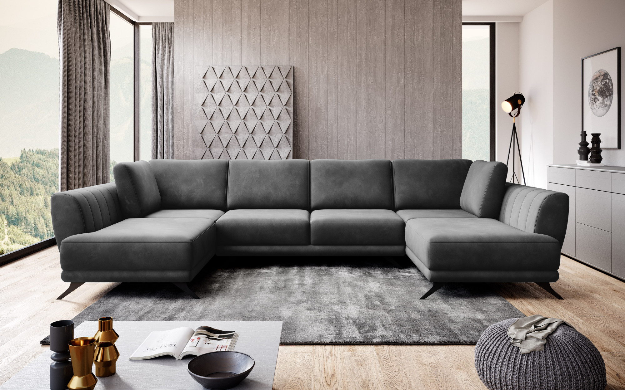 Rohová pohovka ve tvaru U Larco s funkcí spaní - elegantní a moderní kus obývacího nábytku během dne; plnohodnotná, pohodlná postel v noci. Po rozložení poskytuje roh spací plochu o rozměrech: 320 x 124 centimetrů. Larco je velmi snadné rozložit, protože je vybaveno automatickým systémem DL. Provoz tohoto jednoduchého mechanismu spočívá v rozšíření jedné části rohu a následném umístění opěradel k vytvoření dvojité spací plochy. Kromě toho má tento kus nábytku také úložný prostor na lůžkoviny, což šetří místo ve skříni. Kromě toho je rohová sedačka Larco dostatečně prostorná, aby si na ní našel místo každý člen domácnosti, protože její rozměry jsou: 362 x 191 x 90 centimetrů. Co víc, roh Larco je poutavý a není jen neuvěřitelně pohodlný, ale také krásně drží svůj tvar. To je způsobeno vyplněním sedadla vysoce elastickou HR pěnou, která je odolná vůči deformaci a má schopnost znovu získat svůj původní tvar. Navíc se HR pěna přizpůsobuje zarovnání těla, takže je opravdu velmi pohodlná. Rohová sedačka Larco má dekorativní prošívání na vnitřních stranách nábytku a ocelové nohy jsou určitě prvkem, který dodává rohu charakter.