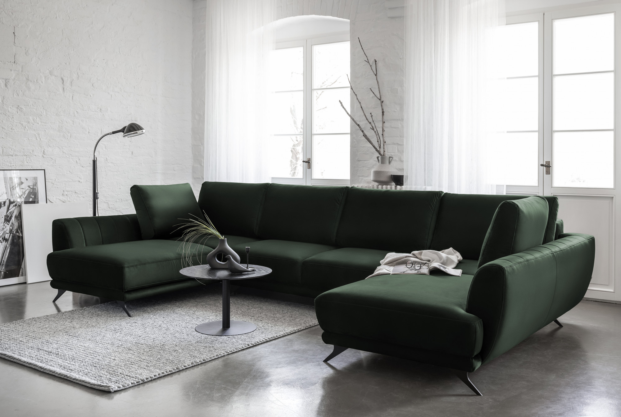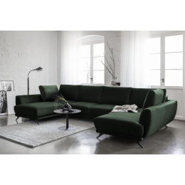 Rohová pohovka ve tvaru U Larco s funkcí spaní - elegantní a moderní kus obývacího nábytku během dne; plnohodnotná, pohodlná postel v noci. Po rozložení poskytuje roh spací plochu o rozměrech: 320 x 124 centimetrů. Larco je velmi snadné rozložit, protože je vybaveno automatickým systémem DL. Provoz tohoto jednoduchého mechanismu spočívá v rozšíření jedné části rohu a následném umístění opěradel k vytvoření dvojité spací plochy. Kromě toho má tento kus nábytku také úložný prostor na lůžkoviny, což šetří místo ve skříni. Kromě toho je rohová sedačka Larco dostatečně prostorná, aby si na ní našel místo každý člen domácnosti, protože její rozměry jsou: 362 x 191 x 90 centimetrů. Co víc, roh Larco je poutavý a není jen neuvěřitelně pohodlný, ale také krásně drží svůj tvar. To je způsobeno vyplněním sedadla vysoce elastickou HR pěnou, která je odolná vůči deformaci a má schopnost znovu získat svůj původní tvar. Navíc se HR pěna přizpůsobuje zarovnání těla, takže je opravdu velmi pohodlná. Rohová sedačka Larco má dekorativní prošívání na vnitřních stranách nábytku a ocelové nohy jsou určitě prvkem, který dodává rohu charakter.