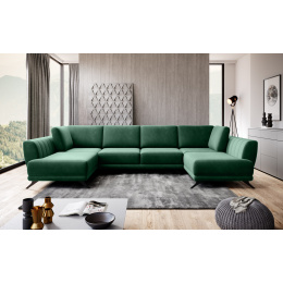 Rohová pohovka ve tvaru U Larco s funkcí spaní - elegantní a moderní kus obývacího nábytku během dne; plnohodnotná, pohodlná postel v noci. Po rozložení poskytuje roh spací plochu o rozměrech: 320 x 124 centimetrů. Larco je velmi snadné rozložit, protože je vybaveno automatickým systémem DL. Provoz tohoto jednoduchého mechanismu spočívá v rozšíření jedné části rohu a následném umístění opěradel k vytvoření dvojité spací plochy. Kromě toho má tento kus nábytku také úložný prostor na lůžkoviny, což šetří místo ve skříni. Kromě toho je rohová sedačka Larco dostatečně prostorná, aby si na ní našel místo každý člen domácnosti, protože její rozměry jsou: 362 x 191 x 90 centimetrů. Co víc, roh Larco je poutavý a není jen neuvěřitelně pohodlný, ale také krásně drží svůj tvar. To je způsobeno vyplněním sedadla vysoce elastickou HR pěnou, která je odolná vůči deformaci a má schopnost znovu získat svůj původní tvar. Navíc se HR pěna přizpůsobuje zarovnání těla, takže je opravdu velmi pohodlná. Rohová sedačka Larco má dekorativní prošívání na vnitřních stranách nábytku a ocelové nohy jsou určitě prvkem, který dodává rohu charakter.