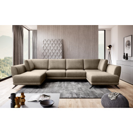 Rohová pohovka ve tvaru U Larco s funkcí spaní - elegantní a moderní kus obývacího nábytku během dne; plnohodnotná, pohodlná postel v noci. Po rozložení poskytuje roh spací plochu o rozměrech: 320 x 124 centimetrů. Larco je velmi snadné rozložit, protože je vybaveno automatickým systémem DL. Provoz tohoto jednoduchého mechanismu spočívá v rozšíření jedné části rohu a následném umístění opěradel k vytvoření dvojité spací plochy. Kromě toho má tento kus nábytku také úložný prostor na lůžkoviny, což šetří místo ve skříni. Kromě toho je rohová sedačka Larco dostatečně prostorná, aby si na ní našel místo každý člen domácnosti, protože její rozměry jsou: 362 x 191 x 90 centimetrů. Co víc, roh Larco je poutavý a není jen neuvěřitelně pohodlný, ale také krásně drží svůj tvar. To je způsobeno vyplněním sedadla vysoce elastickou HR pěnou, která je odolná vůči deformaci a má schopnost znovu získat svůj původní tvar. Navíc se HR pěna přizpůsobuje zarovnání těla, takže je opravdu velmi pohodlná. Rohová sedačka Larco má dekorativní prošívání na vnitřních stranách nábytku a ocelové nohy jsou určitě prvkem, který dodává rohu charakter.