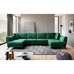 Rohová pohovka ve tvaru U Larco s funkcí spaní - elegantní a moderní kus obývacího nábytku během dne; plnohodnotná, pohodlná postel v noci. Po rozložení poskytuje roh spací plochu o rozměrech: 320 x 124 centimetrů. Larco je velmi snadné rozložit, protože je vybaveno automatickým systémem DL. Provoz tohoto jednoduchého mechanismu spočívá v rozšíření jedné části rohu a následném umístění opěradel k vytvoření dvojité spací plochy. Kromě toho má tento kus nábytku také úložný prostor na lůžkoviny, což šetří místo ve skříni. Kromě toho je rohová sedačka Larco dostatečně prostorná, aby si na ní našel místo každý člen domácnosti, protože její rozměry jsou: 362 x 191 x 90 centimetrů. Co víc, roh Larco je poutavý a není jen neuvěřitelně pohodlný, ale také krásně drží svůj tvar. To je způsobeno vyplněním sedadla vysoce elastickou HR pěnou, která je odolná vůči deformaci a má schopnost znovu získat svůj původní tvar. Navíc se HR pěna přizpůsobuje zarovnání těla, takže je opravdu velmi pohodlná. Rohová sedačka Larco má dekorativní prošívání na vnitřních stranách nábytku a ocelové nohy jsou určitě prvkem, který dodává rohu charakter.