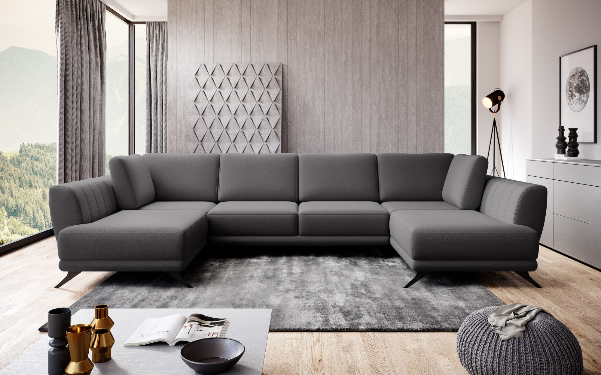 Rohová pohovka ve tvaru U Larco s funkcí spaní - elegantní a moderní kus obývacího nábytku během dne; plnohodnotná, pohodlná postel v noci. Po rozložení poskytuje roh spací plochu o rozměrech: 320 x 124 centimetrů. Larco je velmi snadné rozložit, protože je vybaveno automatickým systémem DL. Provoz tohoto jednoduchého mechanismu spočívá v rozšíření jedné části rohu a následném umístění opěradel k vytvoření dvojité spací plochy. Kromě toho má tento kus nábytku také úložný prostor na lůžkoviny, což šetří místo ve skříni. Kromě toho je rohová sedačka Larco dostatečně prostorná, aby si na ní našel místo každý člen domácnosti, protože její rozměry jsou: 362 x 191 x 90 centimetrů. Co víc, roh Larco je poutavý a není jen neuvěřitelně pohodlný, ale také krásně drží svůj tvar. To je způsobeno vyplněním sedadla vysoce elastickou HR pěnou, která je odolná vůči deformaci a má schopnost znovu získat svůj původní tvar. Navíc se HR pěna přizpůsobuje zarovnání těla, takže je opravdu velmi pohodlná. Rohová sedačka Larco má dekorativní prošívání na vnitřních stranách nábytku a ocelové nohy jsou určitě prvkem, který dodává rohu charakter.